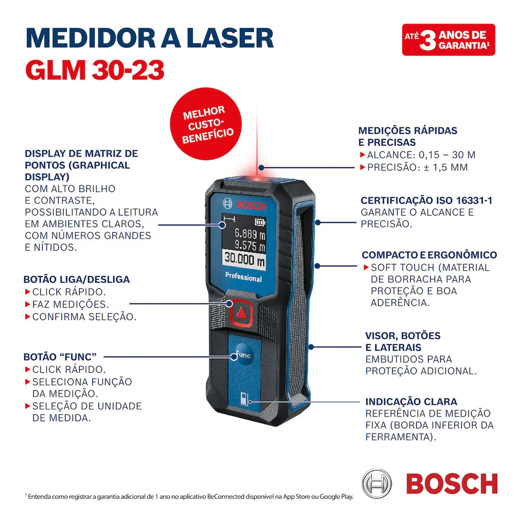 Características Técnicas da Trena a Laser Bosch GLM 30-23